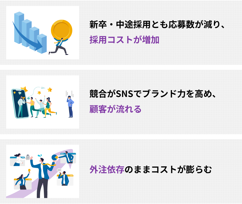 この状態が長引くほど、SNSで存在感を伸ばしている競合との差は広がり、採用・集客のチャンスは失われていきます。