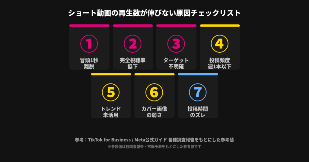 ショート動画の再生数が増えない原因7つ【伸び悩み解消の完全チェックリスト】